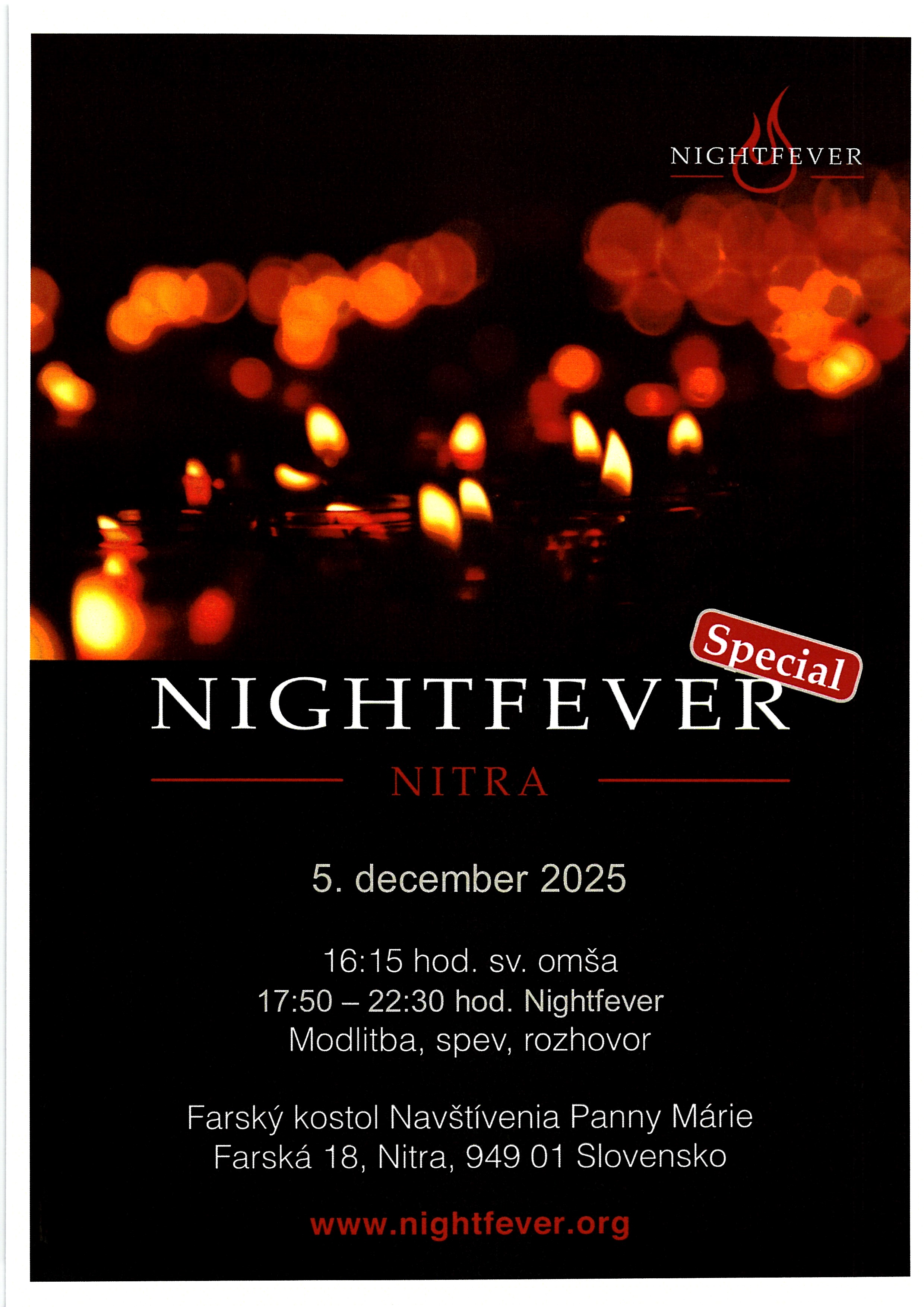 Dnes o 16.30 hod. sa uskutoční tradičný Sprievod svetla z Námestia Jána Pavla II. na Nitrianskom hrade do Adventného mestečka v centre mesta na Svätoplukovom námestí. Sprievod sa začne požehnaním adventného venca. Pútnici so zažatými lampášmi sa vydajú na symbolickú cestu nocou na Svätoplukovo námestie do Adventného mestečka, ktoré bude následne o 17.00 hod. otvorené. Zároveň bude rozsvietený vianočný strom na námestí.