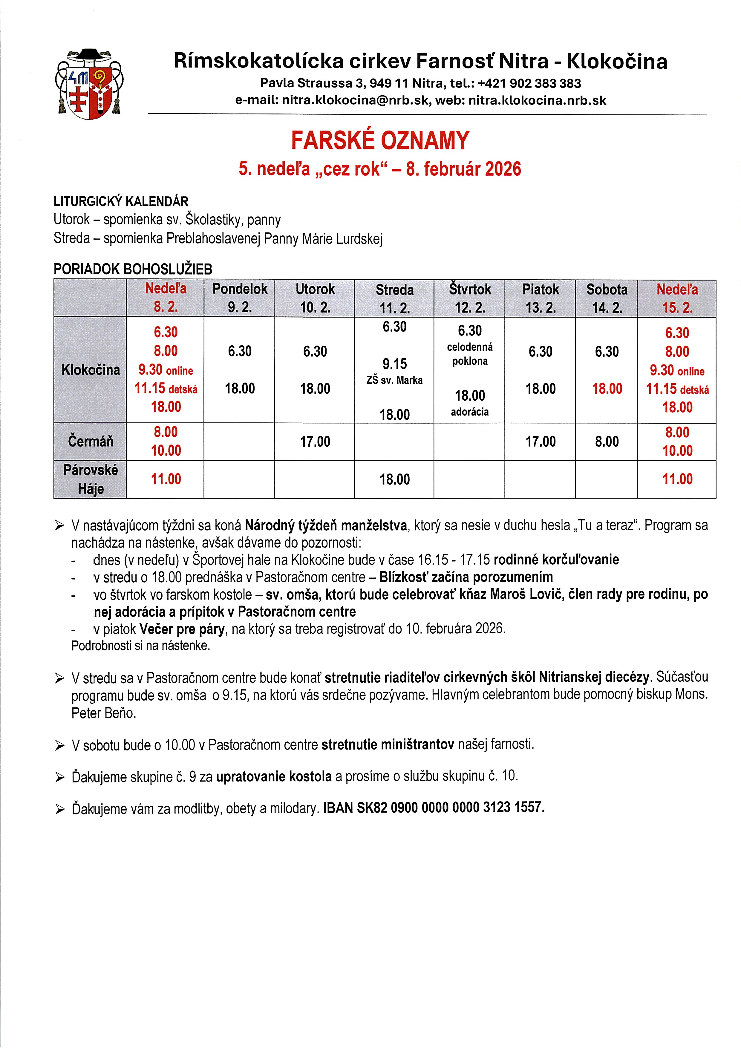 8. február 2026 – Farské oznamy