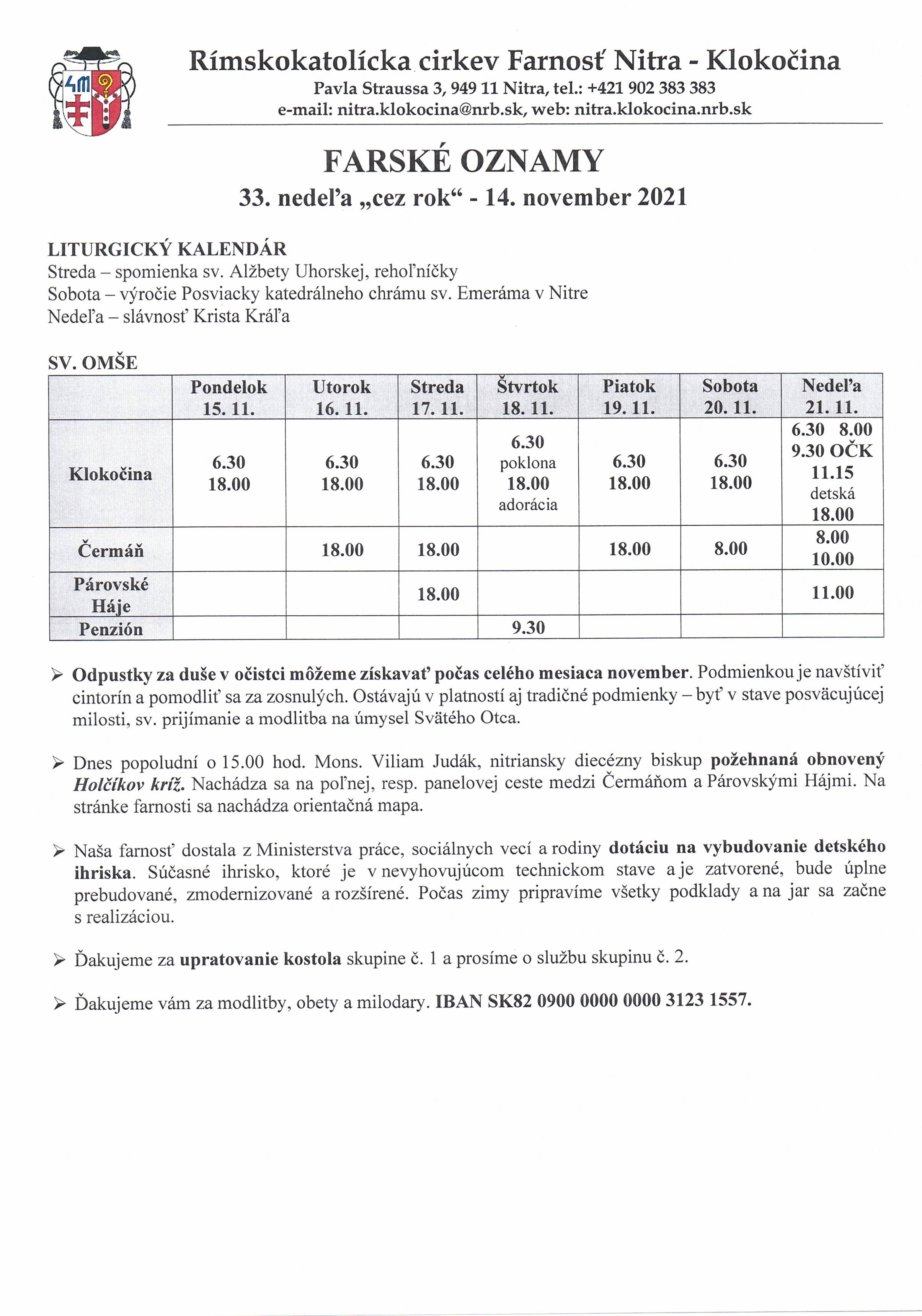 Prosíme vás, aby sa na detských sv. omšiach v nedeľu o 11.15 hod. kvôli kapacite kostola zúčastňovali iba deti s rodičmi.