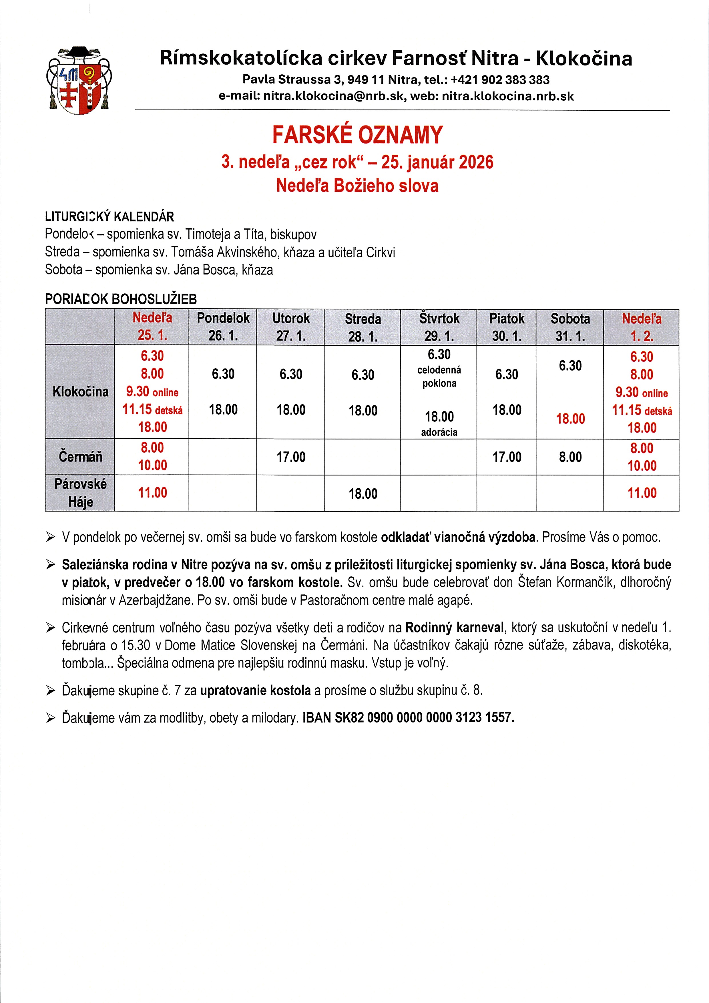 Cirkevné centrum voľného času pozýva všetky deti a rodičov na Rodinný karneval, ktorý sa uskutoční v nedeľu 1. februára o 15.30 v Dome Matice Slovenskej na Čermáni. Na účastníkov čakajú rôzne súťaže, zábava, diskotéka, tombola… Špeciálna odmena pre najlepšiu rodinnú masku. Vstup je voľný.